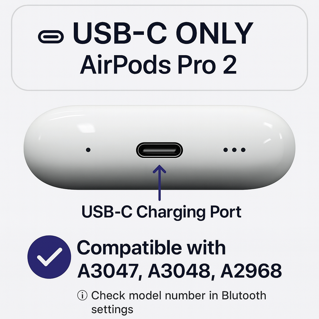 AirPods Pro 2 USB-C and Lightning versions look identical but are not cross-compatible. Ensure your model numbers match A3047, A3048, or A2968.
